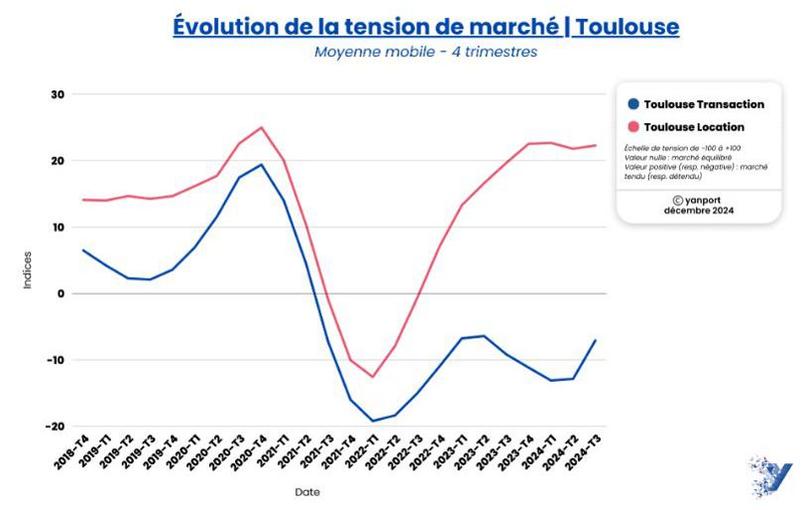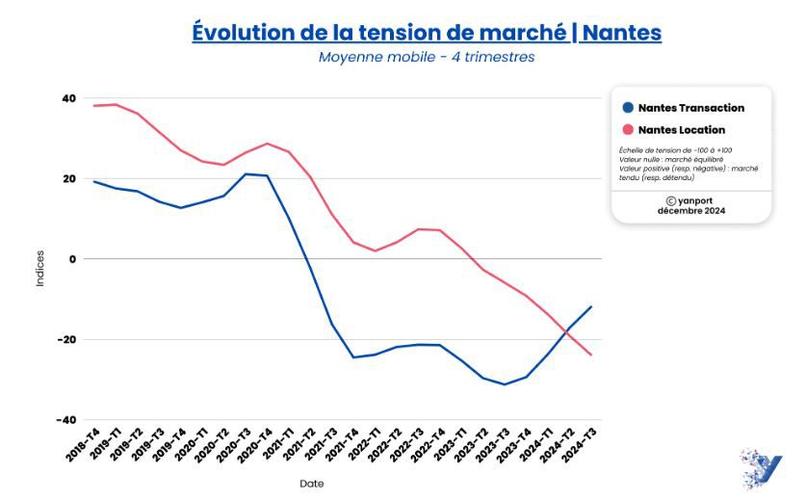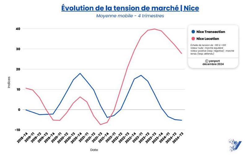 «Nous nous sommes appuyés sur trois types de données pour cette étude de la tension du marché, précise Ludovic Gauvin, directeur des données chez Yanport. À la base, il y a bien sûr le stock de biens mis en vente, mais aussi la durée de commercialisation et surtout l’évolution des prix durant la durée de vie des annonces. Ce dernier point est très important pour traduire une éventuelle évolution des forces en présence.» Lorsque l’indice se trouve autour de 0, le marché est équilibré et, d’expérience, il est dynamique autour de 10 à 20 et commence à surchauffer au-delà. À l’inverse, les valeurs négatives sont la marque d’un marché à la traîne. Il en ressort notamment que depuis la fin 2023/début 2024 la tension sur le marché locatif semble s’être stabilisée voire a légèrement diminué dans les plus grandes villes de France. À l’inverse le marché de la transaction reprend quelques couleurs dans certaines villes comme Paris, Lyon, Nantes, et dans une moindre mesure Toulouse.
