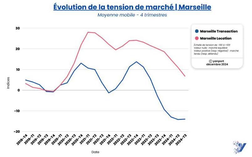 En cette période de trêve des confiseurs toutes les bonnes nouvelles, même timides, sont à regarder d’un œil bienveillant. C’est ainsi qu’une récente analyse signée de la société spécialisée dans la data immobilière Yanport et portant sur l’analyse de la tension du marché immobilier dans les six plus grandes villes françaises donne quelques raisons d’espérer. Alors que le niveau de transactions reste particulièrement faible et qu’à l’inverse les locataires ont toujours énormément de mal à trouver chaussure à leur pied, cette étude pointe de légères améliorations.